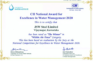 JSW Steel, Vijayanagar received CII National Award for Excellence in Water Management