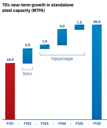At JSW Steel, we are well-poised to benefit from expected growth in steel demand from infrastructure, construction and automobile industries as we ramp up capacity by 70% over the next 5 years from 18 MnT to 30.5 MnT. The salient features of this expansion are: