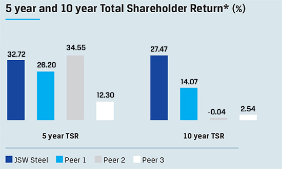 Over the years, JSW Steel has not only challenged the status quo to deliver superior results and accelerated growth, but also built a responsible business that creates sustainable value. Growing to become India’s largest steelmaker, we are enabled by technology-driven efficiency, a value-added product profile, robust financial fundamentals, unremitting support from our employees and communities, and a central focus on progressing on our sustainability parameters.
