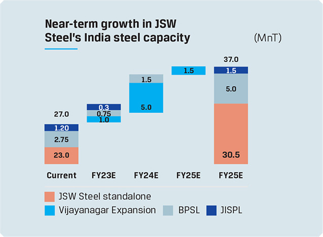 At JSW Steel, we are well placed to leverage this opportunity, and are prudently expanding our capacities across upstream and downstream facilities. In the past five years, we have grown our domestic capacities from 18 MTPA to touch 27 MTPA through organic and inorganic opportunities and have become the most geographically diversified steel producer in India, with a presence in Western, Southern and Eastern India.